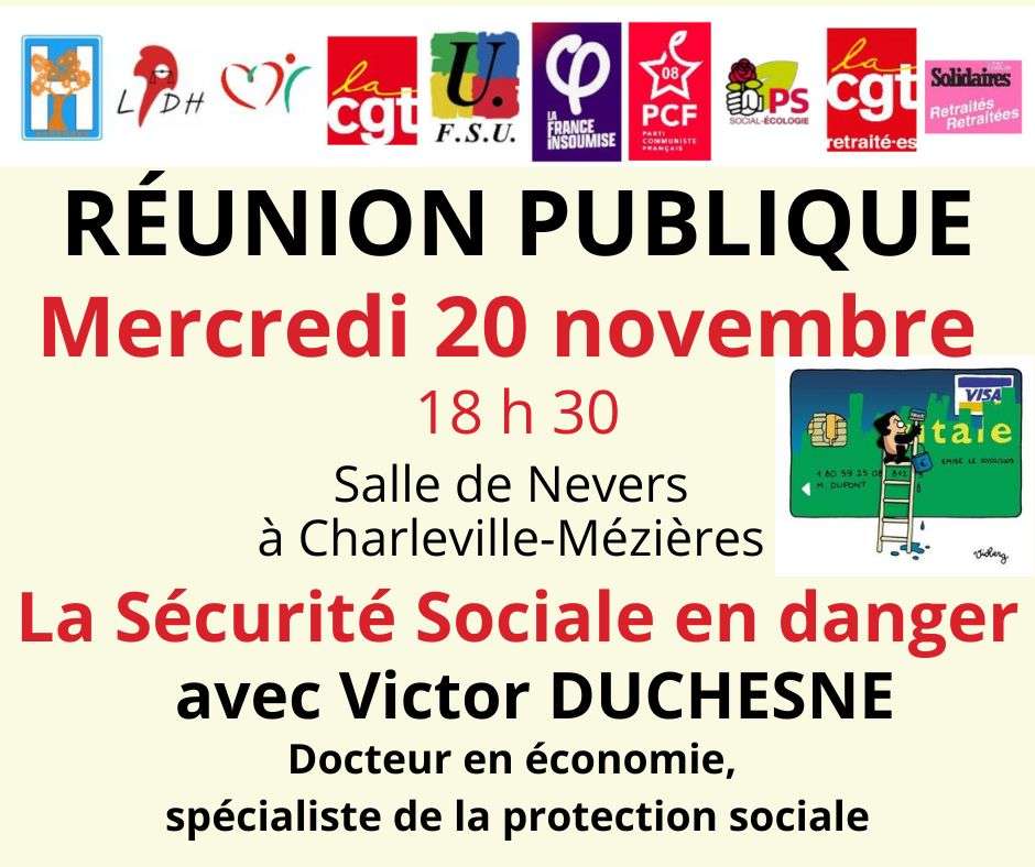 La sécurité sociale en danger : Réunion publique à Charleville le 20 novembre 2024-10-28T12:07:29+01:0028 octobre 2024|Catégories : À LA UNE|Mots-clés : ACTIONS, DÉBATS| Partagez cet article ! FacebookXWhatsAppTelegramEmail Articles similaires [stage] L’Action Sociale au sein de l’Éducation Nationale ? : la connaitre et l’utiliser jeudi 30 avril 2026 à Charleville-Mézières [stage] L’Action Sociale au sein de l’Éducation Nationale ? : la connaitre et l’utiliser jeudi 30 avril 2026 à Charleville-Mézières 29 décembre 2025 [stage] Protection Sociale Complémentaire : les changements à venir et informations sur la santé en général jeudi 27 novembre Charleville-Mézières [stage] Protection Sociale Complémentaire : les changements à venir et informations sur la santé en général jeudi 27 novembre Charleville-Mézières 2 octobre 2025 [stage] Outrage, diffamation, dénonciation calomnieuse comment réagir ? jeudi 4 décembre Charleville-Mézières [stage] Outrage, diffamation, dénonciation calomnieuse comment réagir ? jeudi 4 décembre Charleville-Mézières 19 septembre 2025 [stage] Éducation et lutte contre les idées d’extrême droite [stage] Éducation et lutte contre les idées d’extrême droite 14 septembre 2025 Rassemblement en hommage à Mélanie, notre collègue tuée par un élève à Nogent Rassemblement en hommage à Mélanie, notre collègue tuée par un élève à Nogent 10 juin 2025